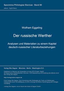 Der russische Werther Analysen und Materialien zu einem Kapitel deutsch-russischer Literaturbeziehungen