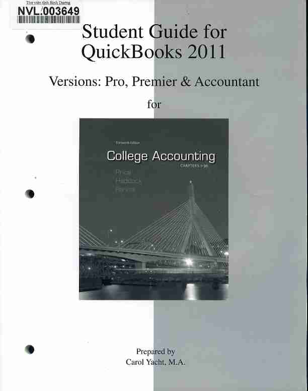 Student guide for Quickbooks 2011 Version: Pro, Premier & Accountant for College accounting