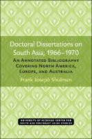 Doctoral Dissertations on South Asia, 1966-1970 : An Annotated Bibliography Covering North America, Europe, and Australi...