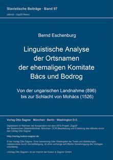 Linguistische Analyse der Ortsnamen der ehemaligen Komitate Bács und Bodrog Von der ungarischen Landnahme (896) bis zur ...