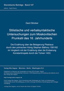 Stilistische und verbalsyntaktische Untersuchungen zum Moskovitischen Prunkstil des 16. Jahrhunderts Die Erzählung über ...